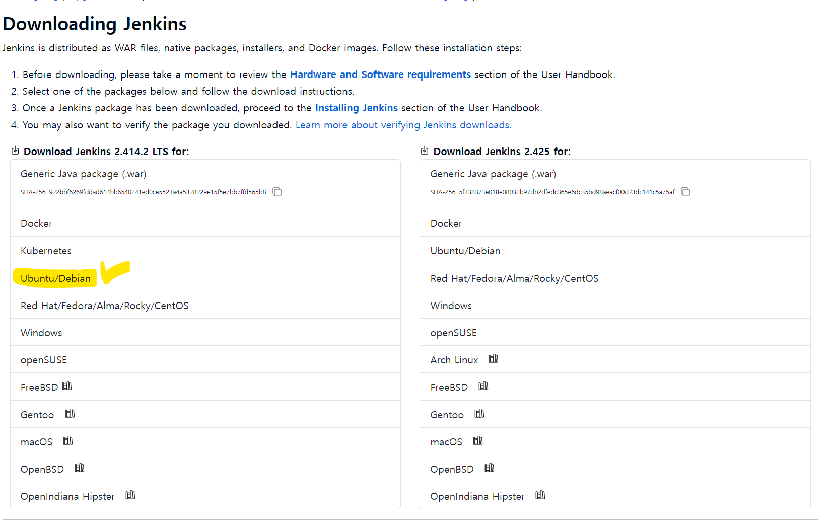 젠킨스 설치는 블로그에 여러 방법이 나오지만 그냥 공식문서 보고하는게 가장 정확하다.