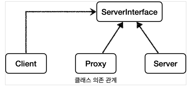 그리고 Client가 사용하는 Server 객체를 프록시 객체로 변경해도 Client 코드를 변경하지 않고 작성이 가능해야한다.